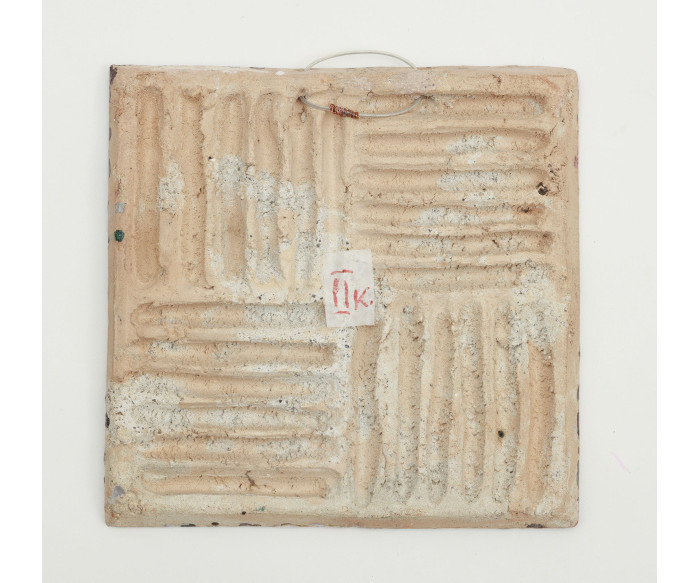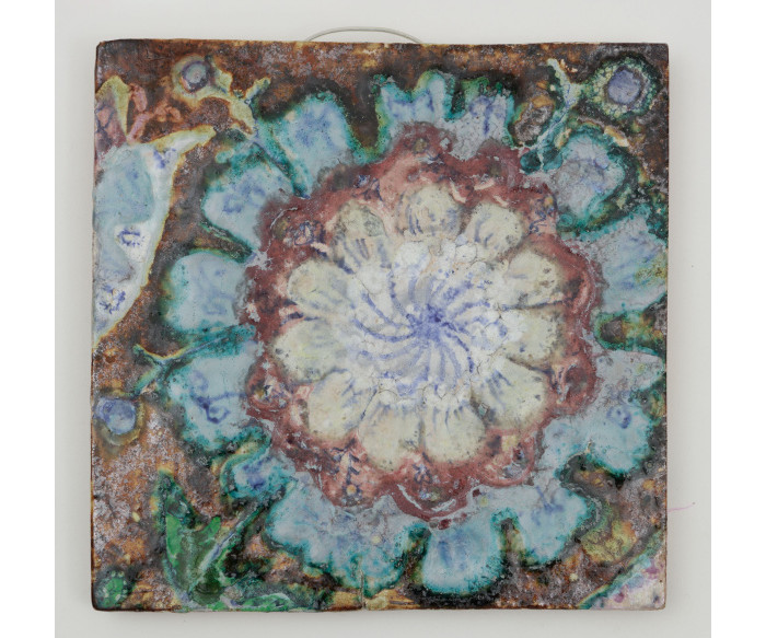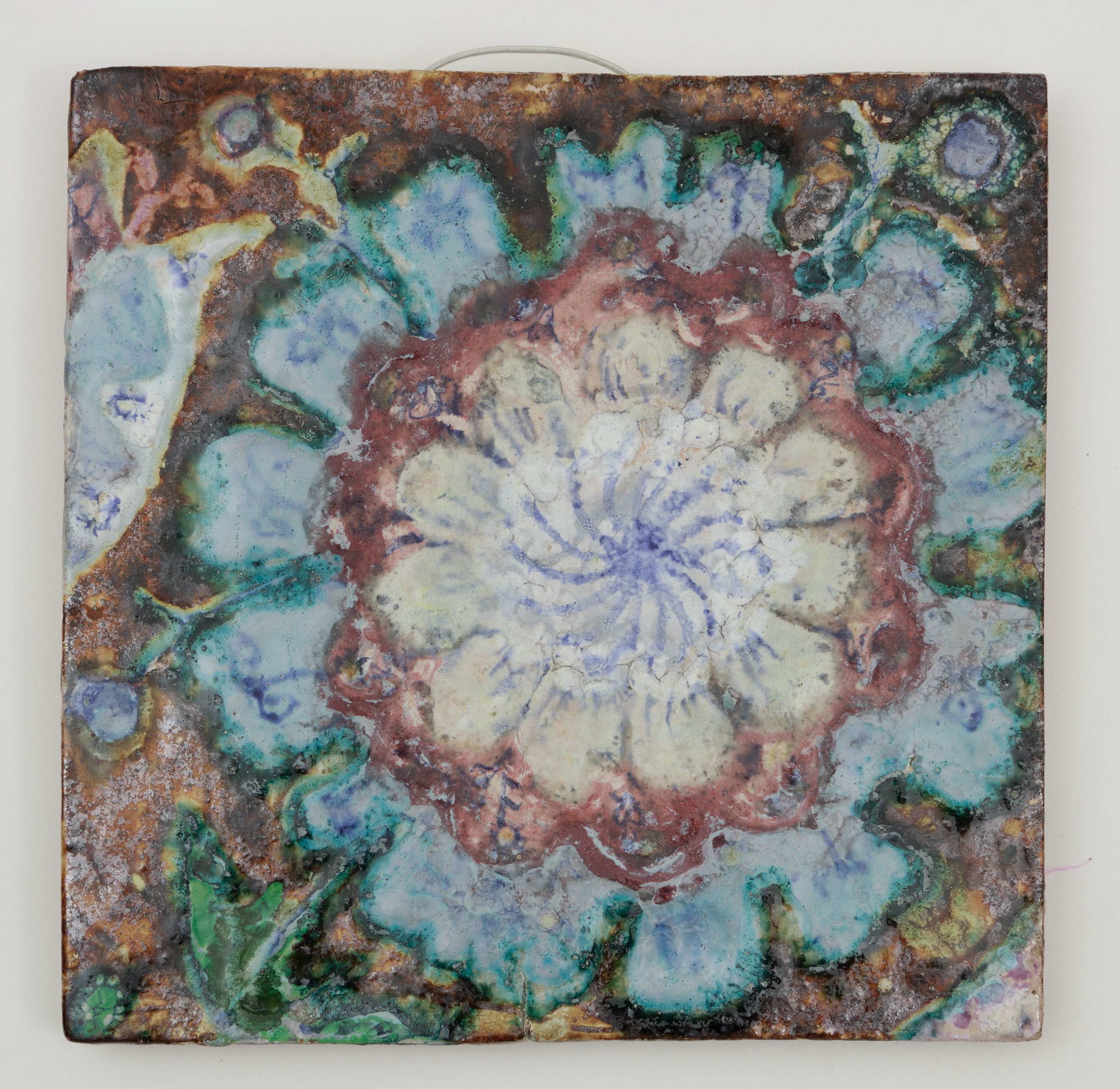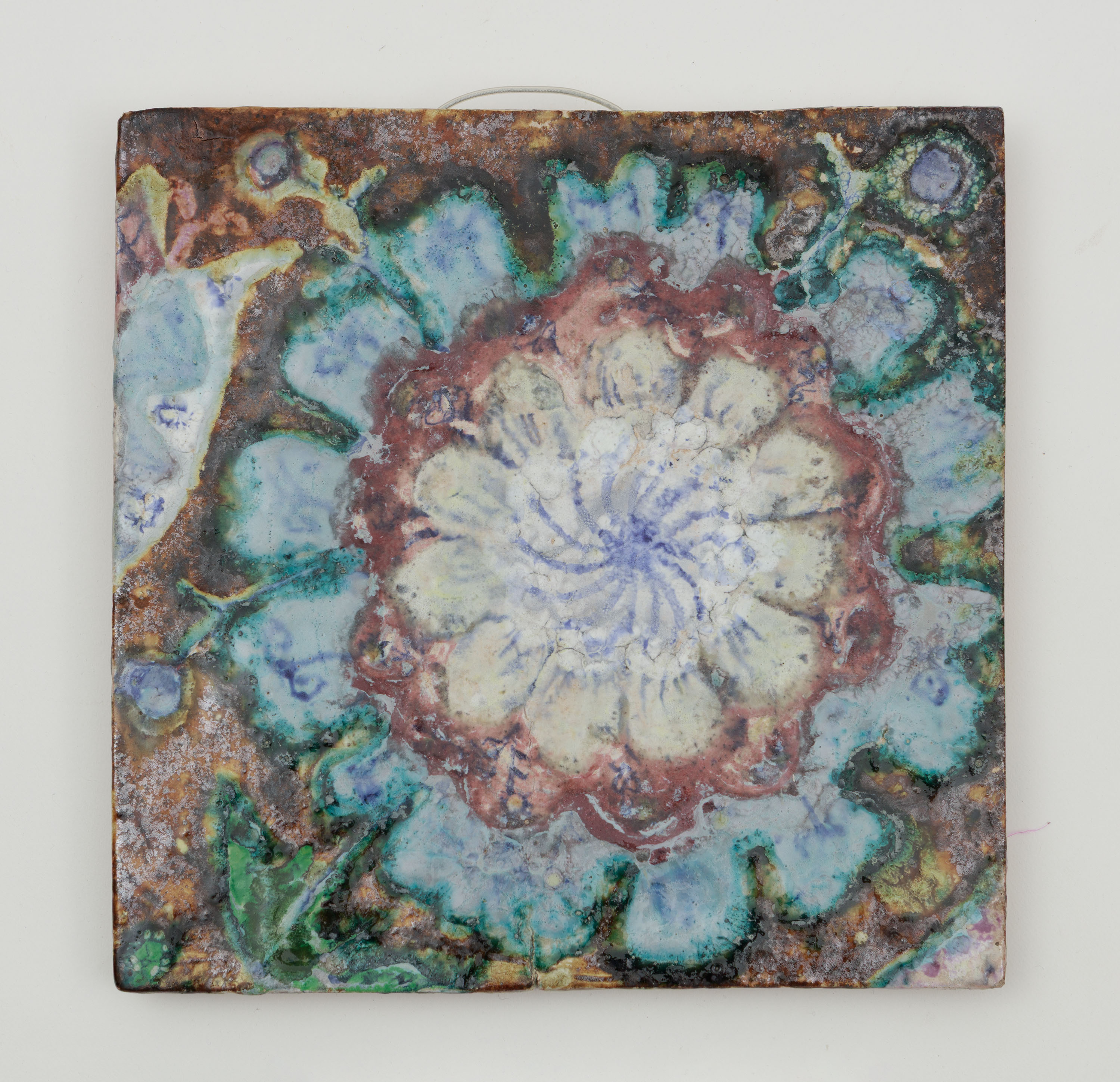 Fireclay, painted, glaze, salts. 29.5 × 29.5 cm