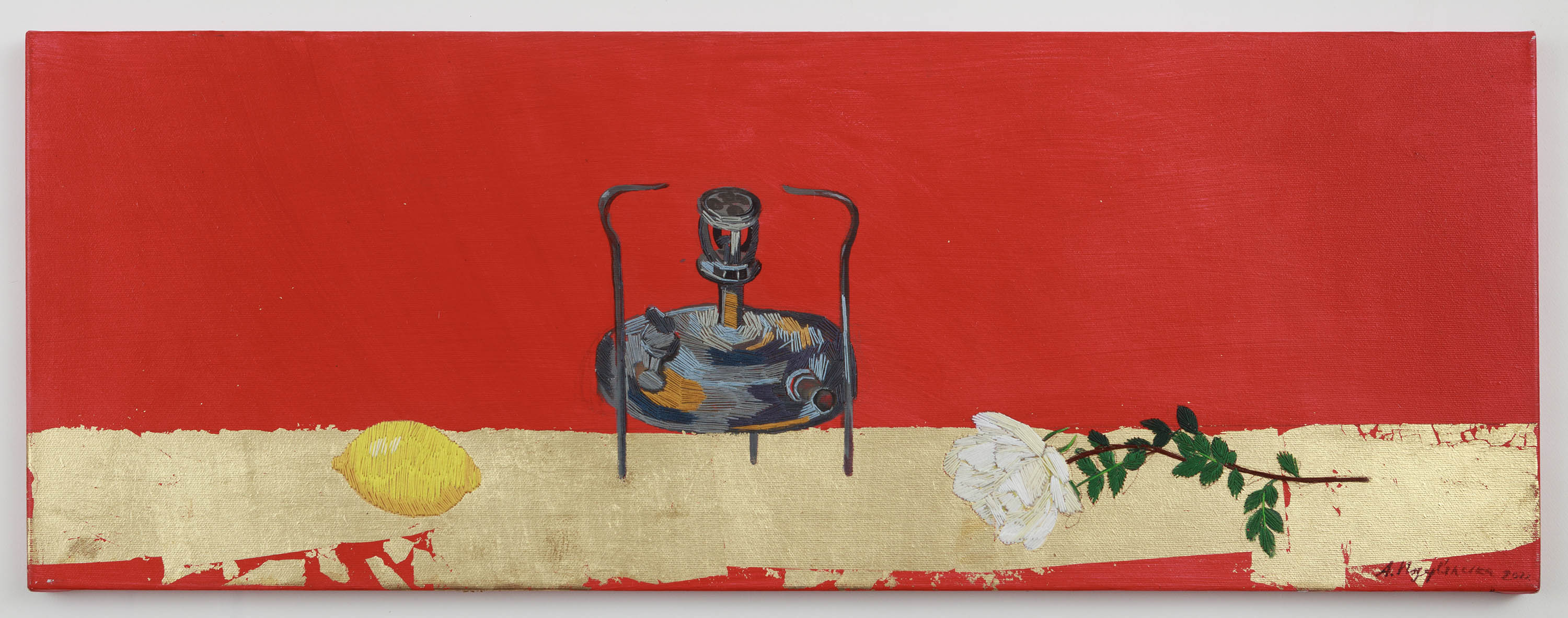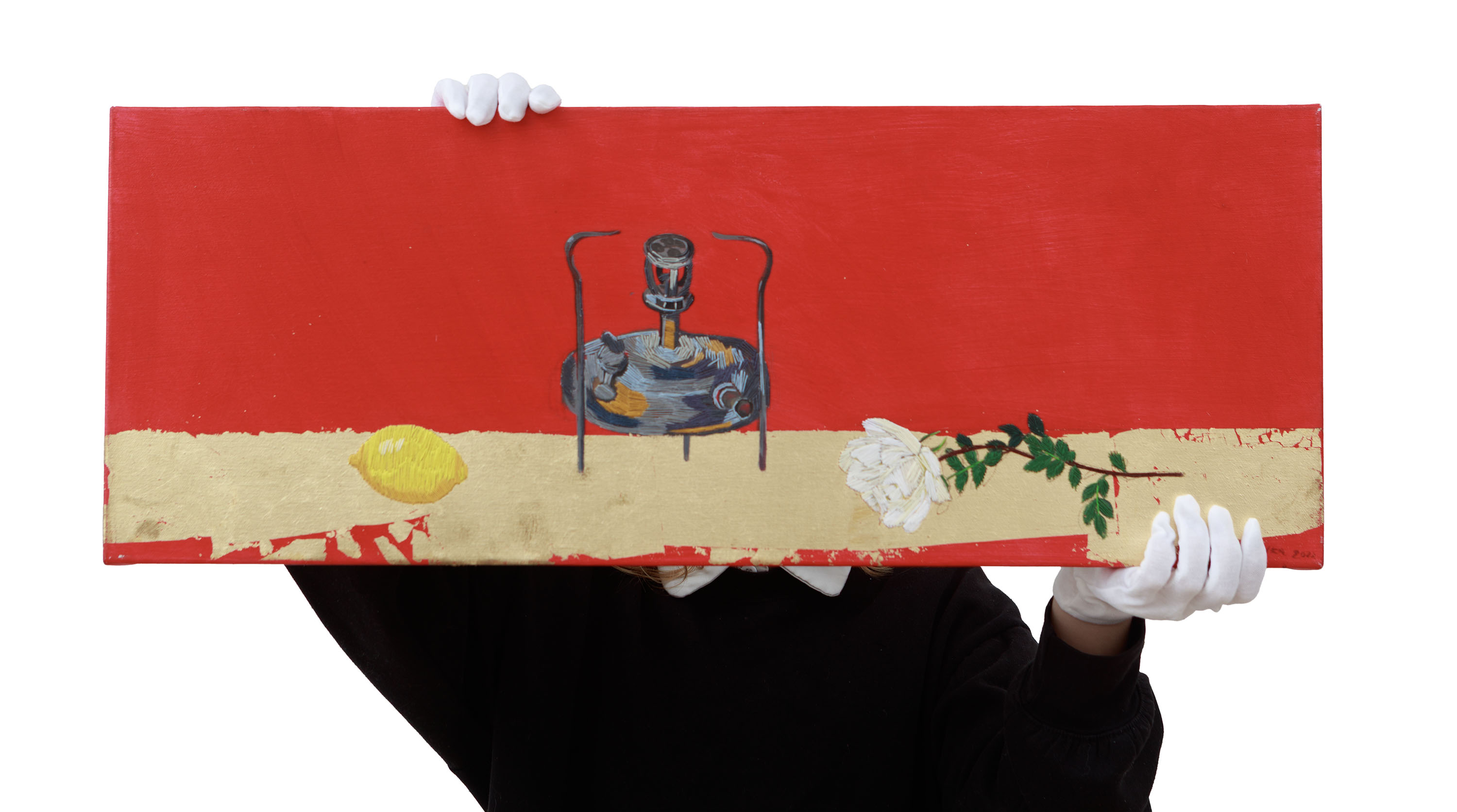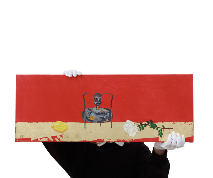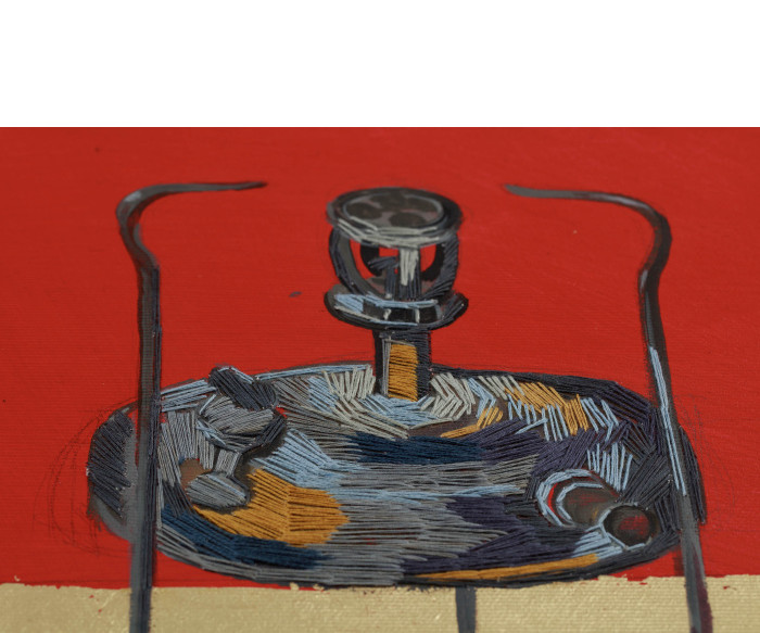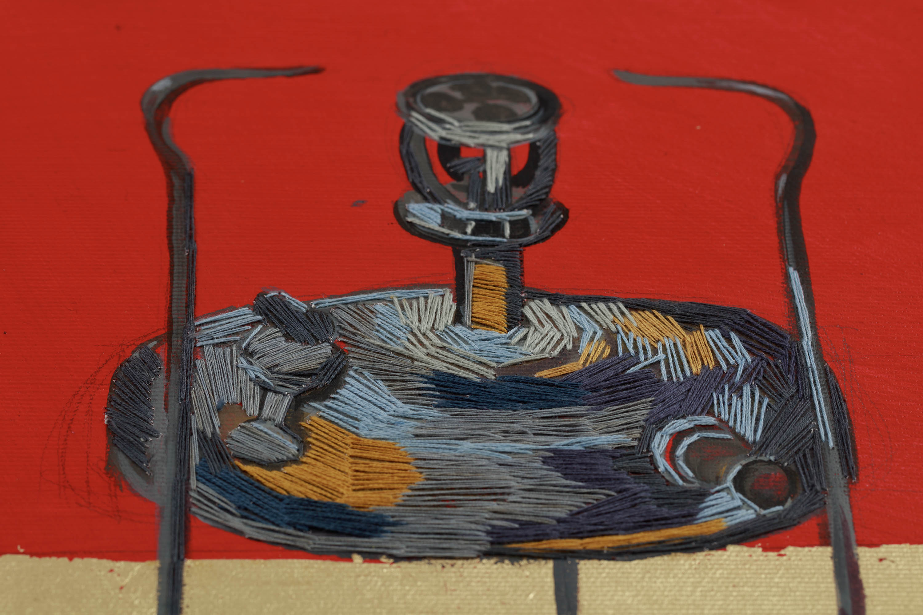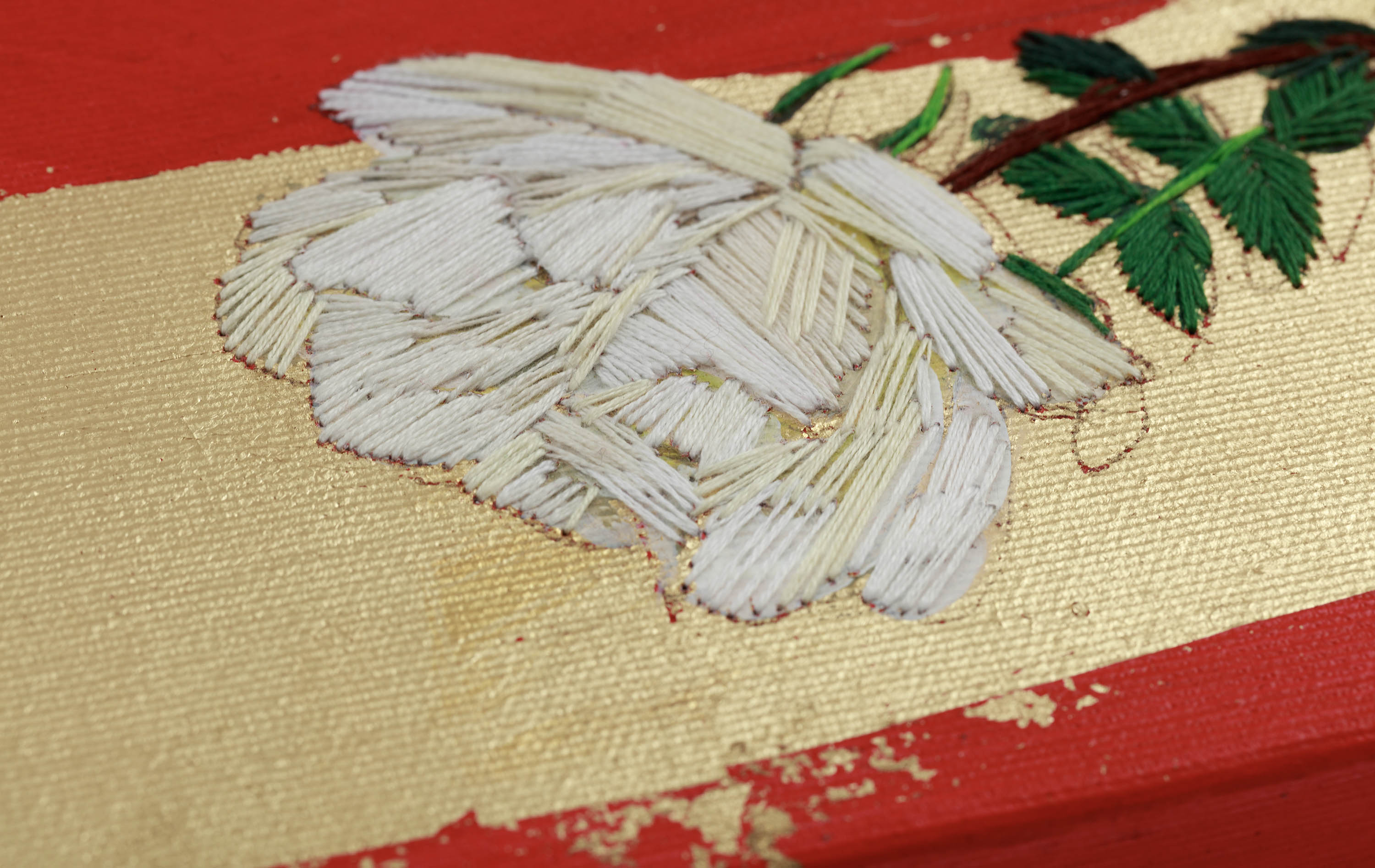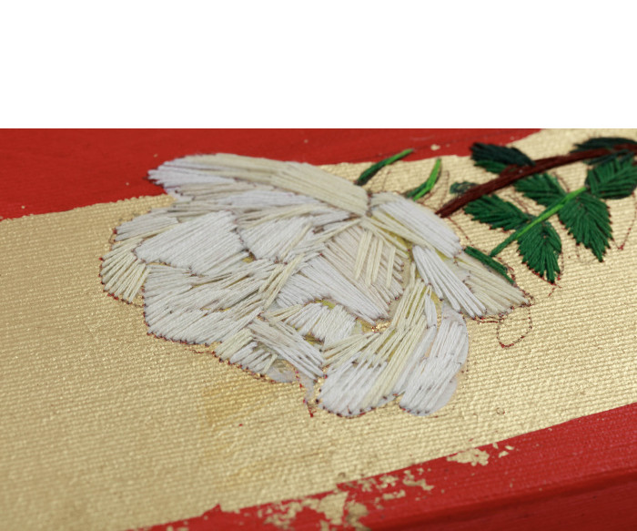Acrylic, hand embroidery on canvas. 30 × 80 cm. Signed and dated lower righ