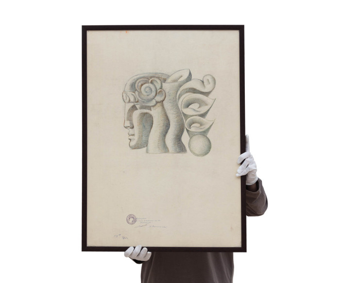 Pencils on cardboard. 80 × 60 cm. Signed on the reverse