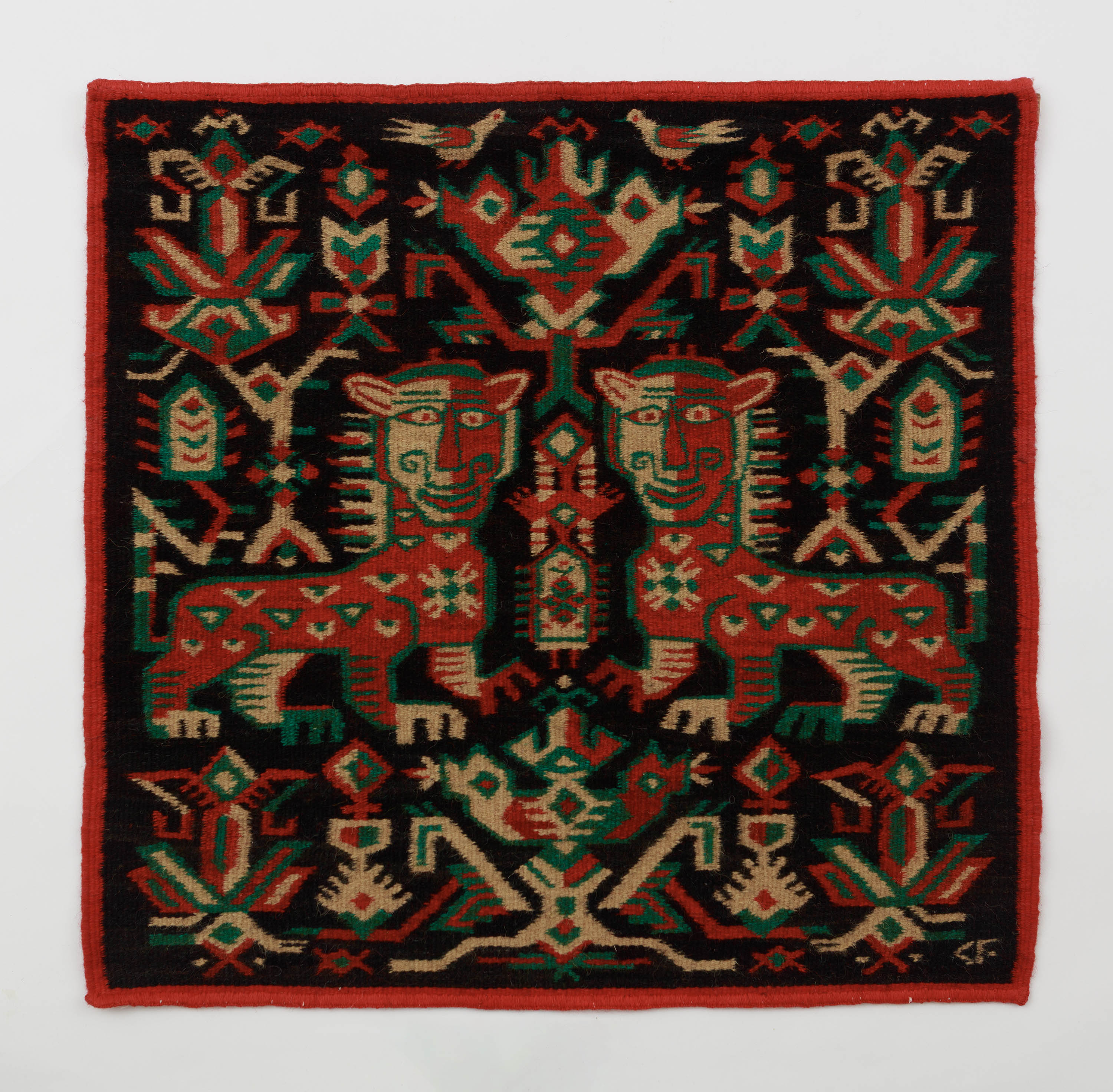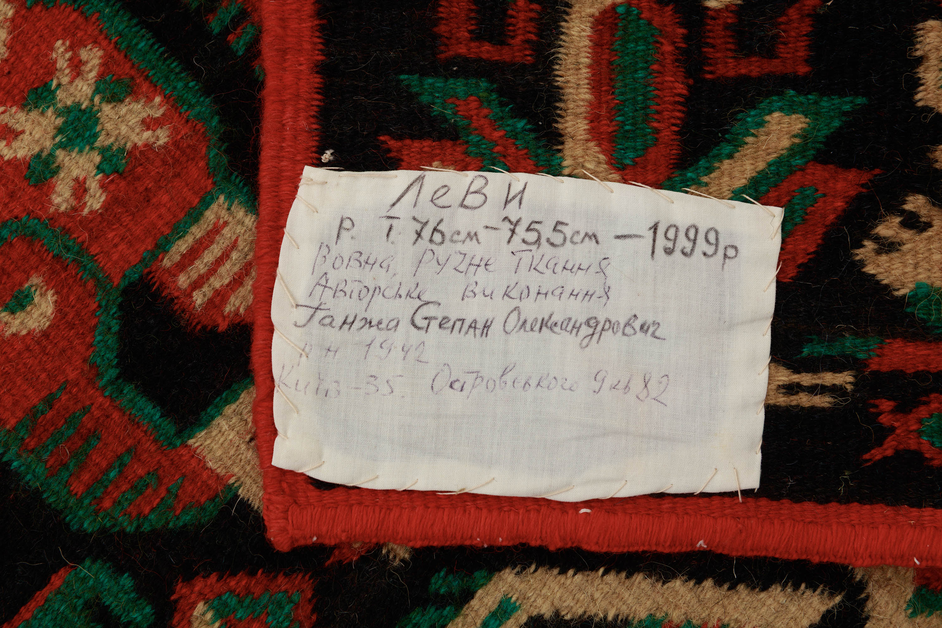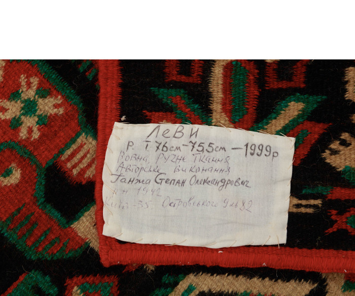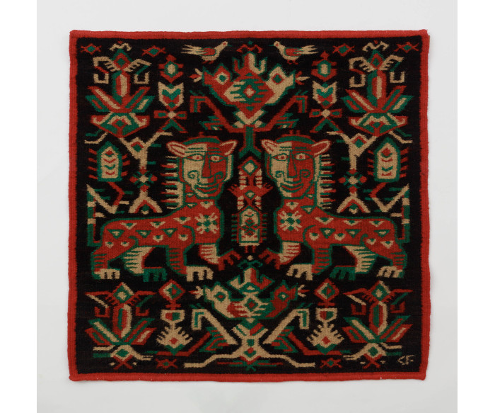 Вовна, ручне ткання. 76 × 75,5 см. Підпис на звороті