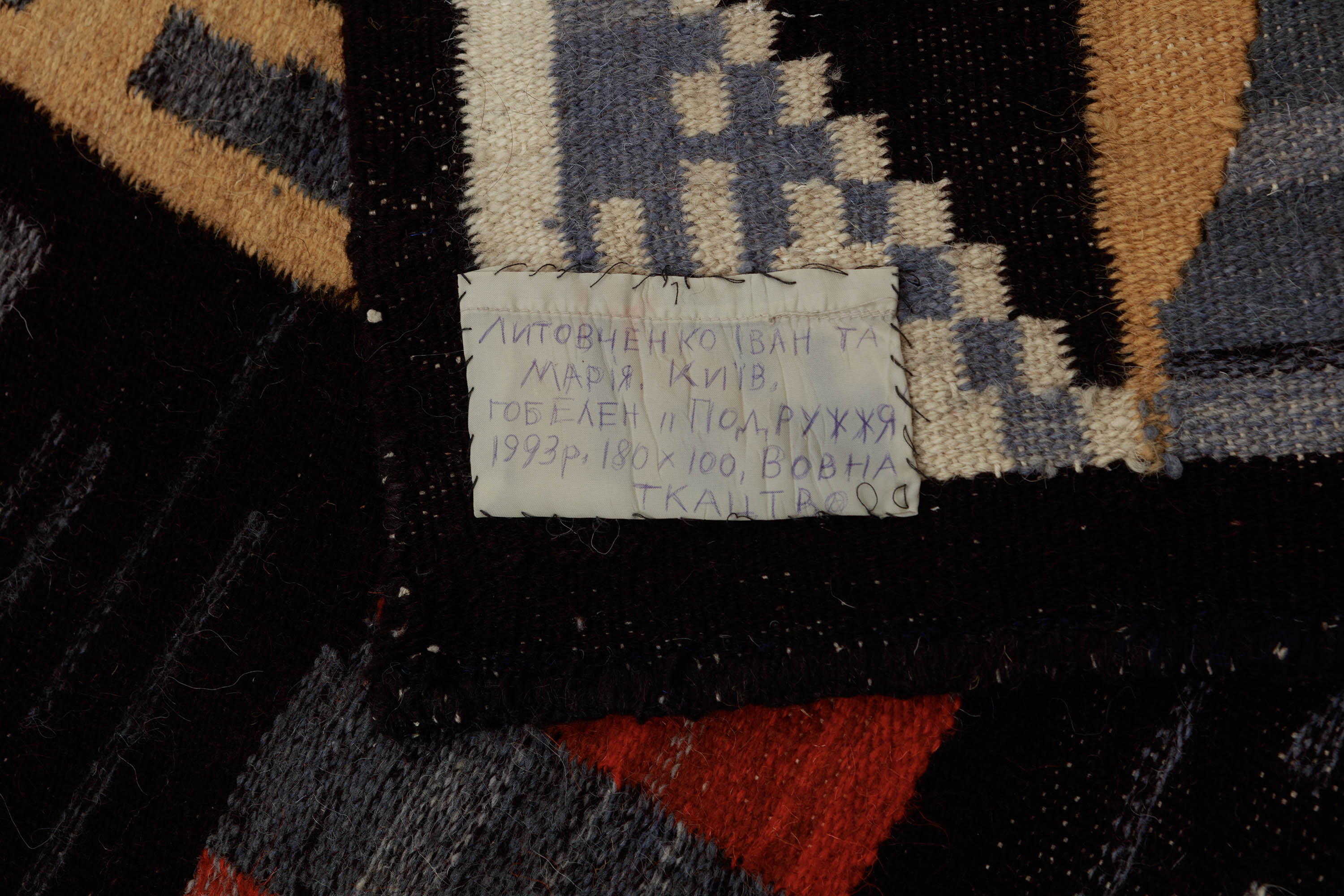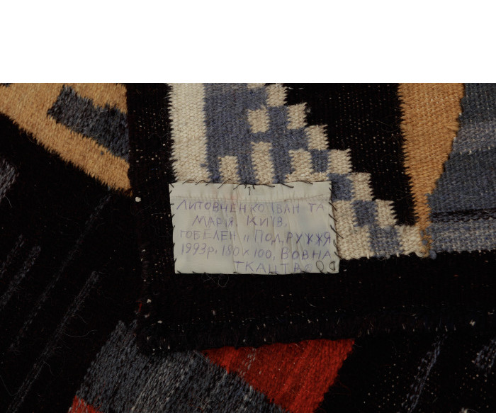 Вовна, ручне ткання. 214 × 97 см. Підпис на звороті