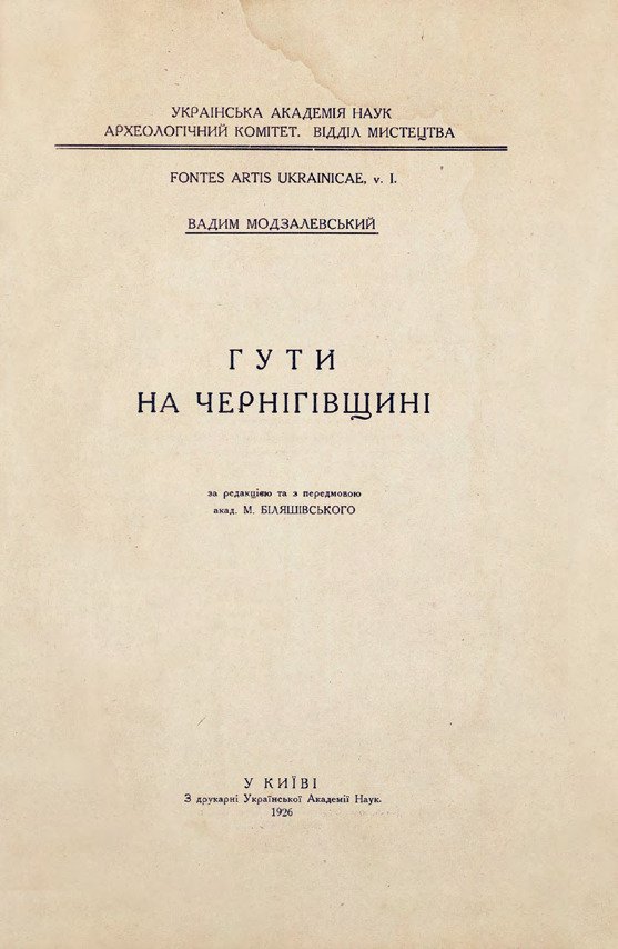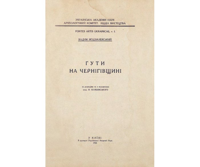 За ред. та з передм. акад. М. Біляшівського; Українська академія наук. Археологічний комітет, відділ мистецтва. Київ: З друк. Української академії наук. / Fontes artis ukrainicae, v. 1. — [5] арк., 192 с., [1] арк.: табл., 2 іл. на [4] арк., портр. — 26,8 × 18 × 1 см. В оригінальній обкладинці. Нерозрізаний екземпляр. Незначні потертості та забруднення. Позначка кульковою ручкою. У додатках 2 ілюстрації. Видання має наукову, історико-культурну цінність і становить колекційний інтерес.