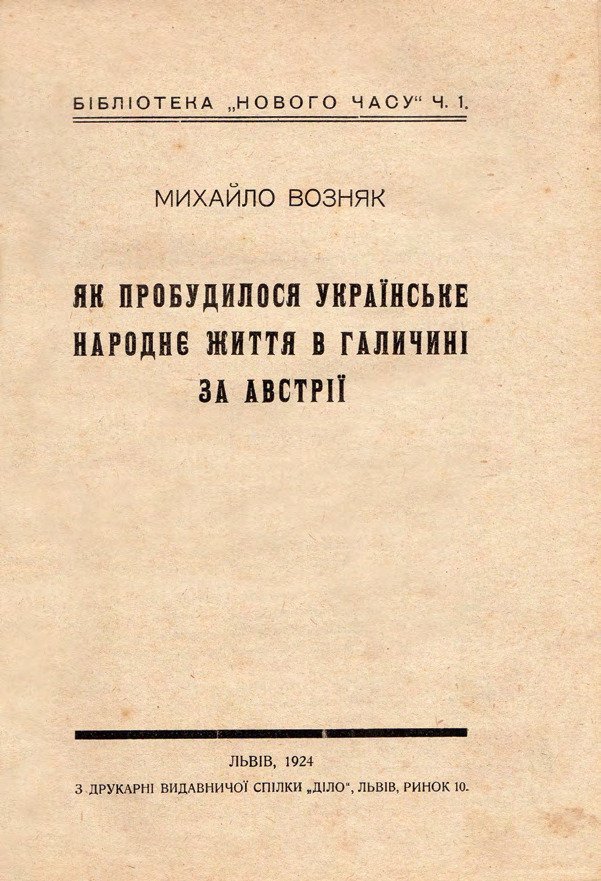 Возняк М. Як пробудилося українське народнє життя в Галичині за Австрії.