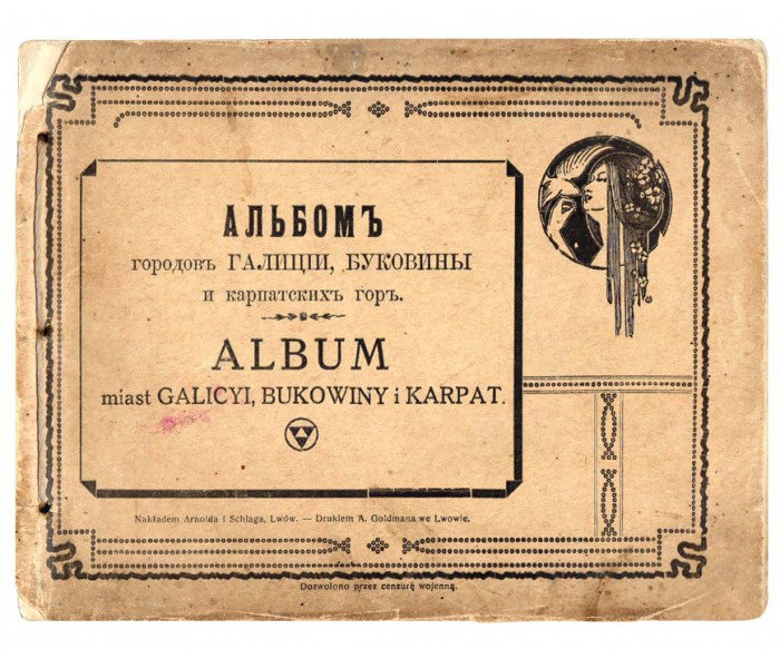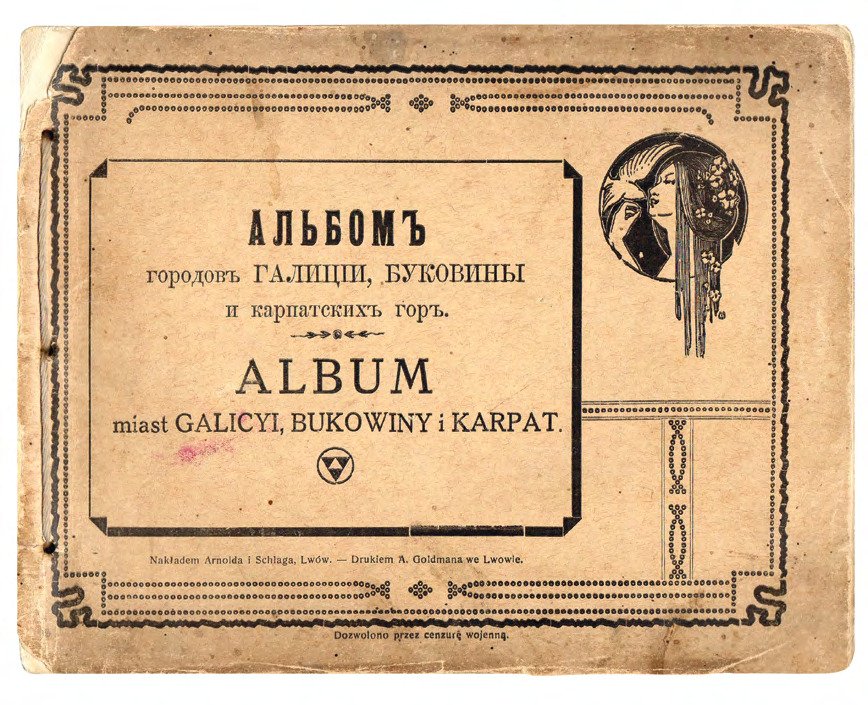 Album miast Galicyi, Bukowiny i Karpat. Lwów: Nakladem Arnolda і Schlaga; drukiem A. Goldmana, — [2] арк., 48 арк. іл.: іл. — 15,4 × 19,9 × 0,7 см. В оригінальній обкладинці. Потертості та забруднення паперу. Паралельний переклад польською мовою. Видання має наукову, художню, історико-культурну цінність і становить колекційний інтерес. Ілюстроване видання.