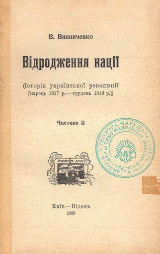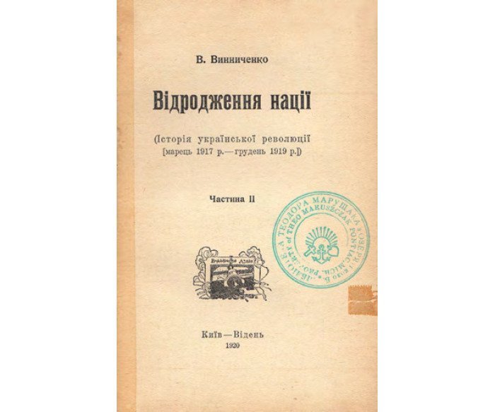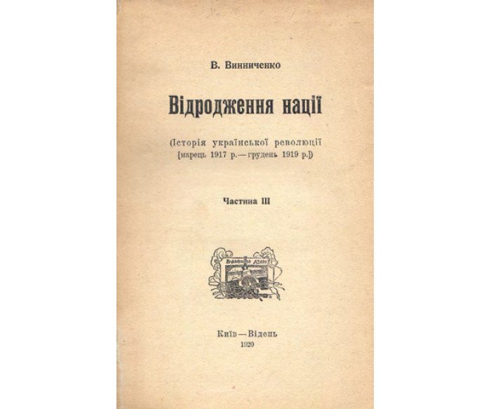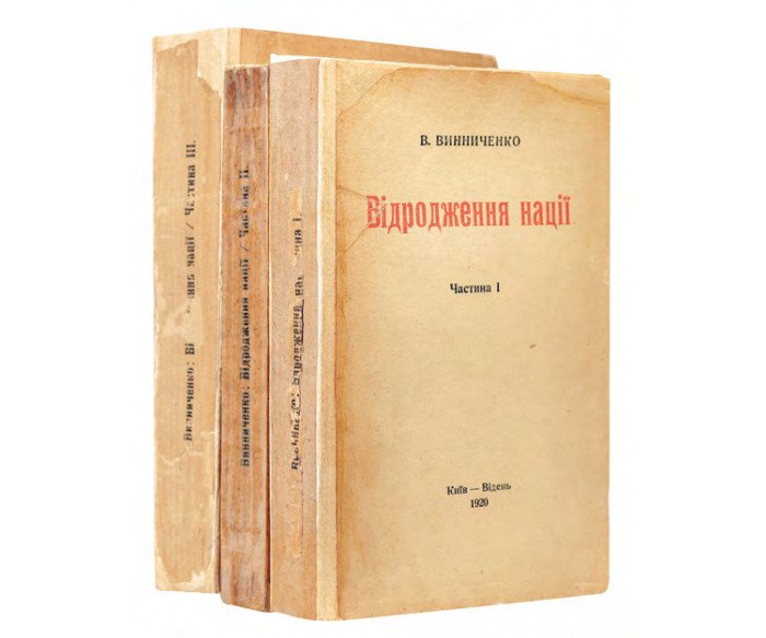 Історія української революції [марець 1917 р. — грудень 1919 р.]: у 3-х ч. — Ч. І–ІІІ. Київ — Відень: Видавництво «Дзвін»; [з друк. Христофа Райсера Синів]. — Ч. І: 348 с.; ч. ІІ: 328 с.; ч. ІІІ: 536 с. — 18,5 × 12 × 2,5 см; 18,5 × 12 × 2,5 см; 20 × 12 × 3,5 см. В оригінальних обкладинках. Потертості та пожовтіння паперу. Сліди реставрації. На титулах і у тексті чорнильні штампи «Бібліотека Теодора Марущака з Озерян коло Б. * Property of Theo Maruszczak Pontiac, Mich.». Книги мають наукову, історико-культурну цінність і становлять колекційний інтерес. Бібліографічна рідкість. Прижиттєве видання автора.
