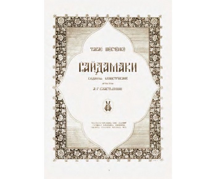 Видання іллюстроване артистом А. Г. Сластьоною. Київ — Ляйпциг — Коломия — Winnipeg: Укpаїнська накладня — Галицька накладня — Ukrainian Publishing; [Берлін: друк. Sabo]. — 50 с.: іл., 14 табл., фронтиспис: поpтp. — 44 × 32 × 1,5 см. У високохудожній коленкоровій палітурі з орнаментально-шрифтовим тисненням золотом. Потертості та забруднення оправи. Незначне пожовтіння паперу, забруднення, надриви. На авантитулі підпис чорнилом [«В. Павлусевич»]. Книга має наукову, художню, історико-культурну цінність і становить колекційний інтерес. Бібліографічна рідкість. Портрет Тараса Шевченка роботи Фотія Красицького та ілюстрації Опанаса Сластіона.
