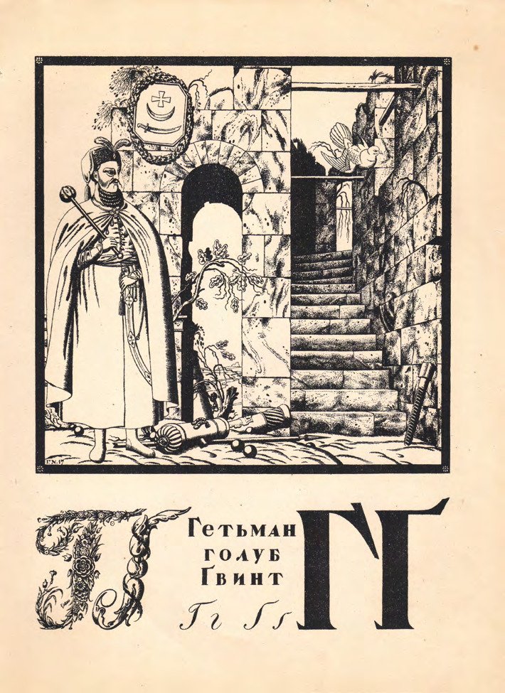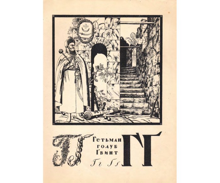 [Чотирнадцять аркушів відбитків. 1 арк.: [титульний аркуш], 13 арк.: літери «Б», «В», «Г Ґ», «З», «И І», «К», «Л», «М», «Н», «О», «С», «Ф», «Ч».] [С.Петербурґ: Выданнє друкарні Т-ва Ґоліке і Вільборґ, 1917]. — 14 арк. — 32,5 × 25 × 0,3 см. В індивідуальній шкіряній папці з орнаментально-шрифтовим тисненням золотом. Незначне пожовтіння та потертості паперу, надриви кутиків. Видання має наукову, історико-культурну цінність і становить колекційний інтерес. Книги, оформлені Г. Нарбутом, а також видання з репродукціями його друкованих і невиданих творів є бібліографічною рідкістю. Наявність цього видання в бібліотеках, музеях і приватних зібраннях визначає особливий статус цих колекцій.