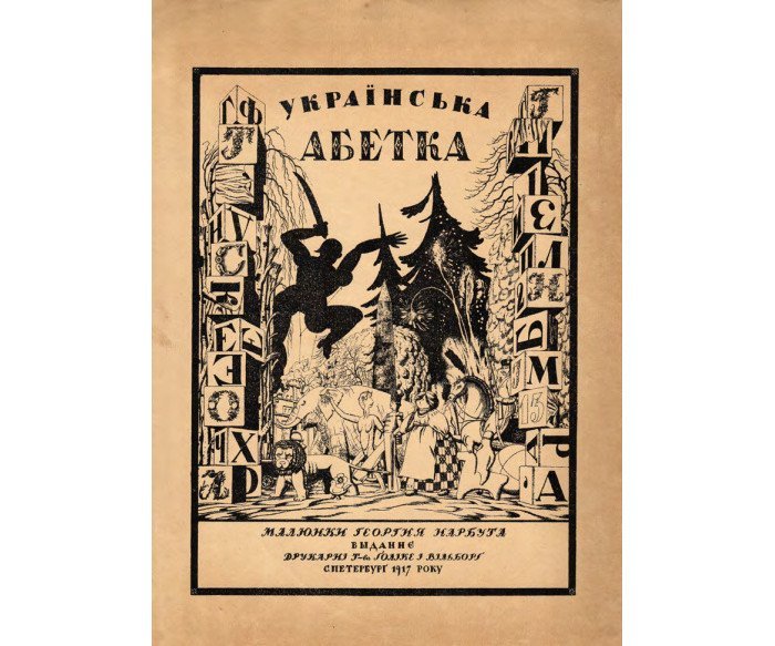 10 000 — 12 000Ще 1917 року в Петербурзі Георгій Нарбут розпочав роботу над «Українською абеткою», створивши 15 композицій (туш, перо) з оригінально зображеними літерами та ілюстраціями («А», «Б», «В», «Г Ґ», «З», «И І», «К», «Л», «М», «Н», «О», «С», «Ф», «Ч»). Рисунки першого варіанту абетки було передано в друкарню видавництва «Голіке і Вільборг» для виготовлення високоякісних кліше. На деякий час праця над абеткою призупинилася у зв’язку з переїздом Г. Нарбута до Києва. У 1919 р. худож ник продовжив роботу, дещо змінивши втілення задуму, — рисунки набули виразності й певної веселості. Проте він встиг переробити лише три аркуші, а 23 травня 1920 року художника не стало. Рік потому 14 відбитків з його рисунків було видано в Петрограді окремим накладом без зазначення накладу та вихідних даних. Аркуш «А» із зображенням ангела до видання не потрапив, а інший його варіант було відтворено в каталозі посмертної виставки Г. Нарбута в Києві (1926).