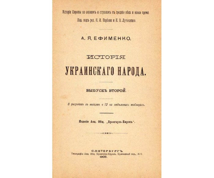 [В 2-х выпусках]. — Выпускъ первый. 9 рисунковъ въ текстѣ и 12 на отдѣльныхъ таблицахъ. Выпускъ второй. 8 рисунковъ въ текстѣ и 12 на отдѣльныхъ таблицахъ / Исторія Европы по эпохамъ и странамъ въ средніе вѣка и новое время; подъ ред. Н. И. Карѣева и И. В. Лучицкаго. С.-Петербургъ: Типографія Акц. общ. Брокгаузъ — Ефронъ. — [1] л., 192 с., [12] л. илл., [1] л., 193–392 с., [12] илл. на [13] л. — 25 × 16,5 × 2,5 см. У складеній (шкіра, «мармуровий» папір) палітурі, стилізованій під оправу XIX століття. Потертості та забруднення. Книга має наукову, історико-культурну цінність і становить колекційний інтерес. Бібліографічна рідкість. Прижиттєве видання автора. Ілюстроване видання.
