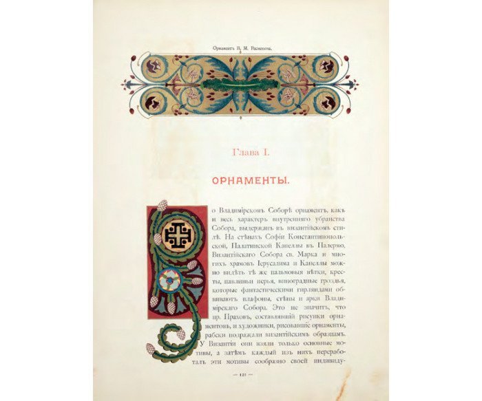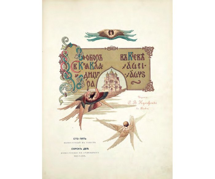 Сто пять иллюстрацій въ текстѣ и сорокъ двѣ иллюстраціи на отдѣльныхъ листах. Кіевъ: Изданіе С. В. Кульженко; тип. С. В. Кульженко. — VIII с., 138 с.: илл., [42] илл. на отд. л. — 33 × 25 × 1,5 см. В оригінальній високохудожній коленкоровій палітурі з орнаментально-шрифтовим тисненням. Ілюстрований форзац, хромолітографований титульний аркуш, заставки, ініціали. Ілюстрації виконано у техніках фототипії та фотоцинкографії. Незначні потертості палітури, пожовтіння паперу. Видання має наукову, художню, історико-культурну цінність і становить колекційний інтерес. Бібліографічна рідкість. Знаменита книга, яка є унікальним джерелом знань з історії Києва. Містить докладний ілюстрований опис Володимирського собору — надзвичайного за багатством художнього задуму та виконання.
