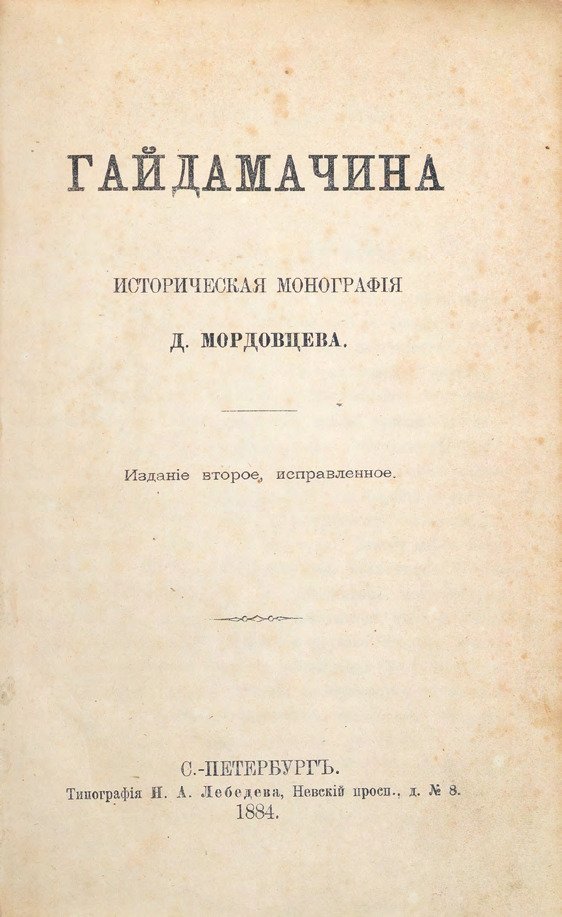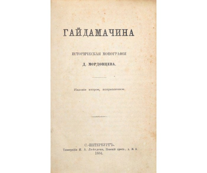 600 — 700У монографії відомого історика та письменника Д. Мордовцева представлено детальний опис подій гайдамацького руху від його зародження до апогею — Коліївщини. Автор наполегливо висловлює думку про обумовленість «народної смути» конкретними соціальними, економічними, національними та релігійними чинниками. Він стверджує, що народні повстання були закономірною відповіддю на зростання кріпосного гніту.