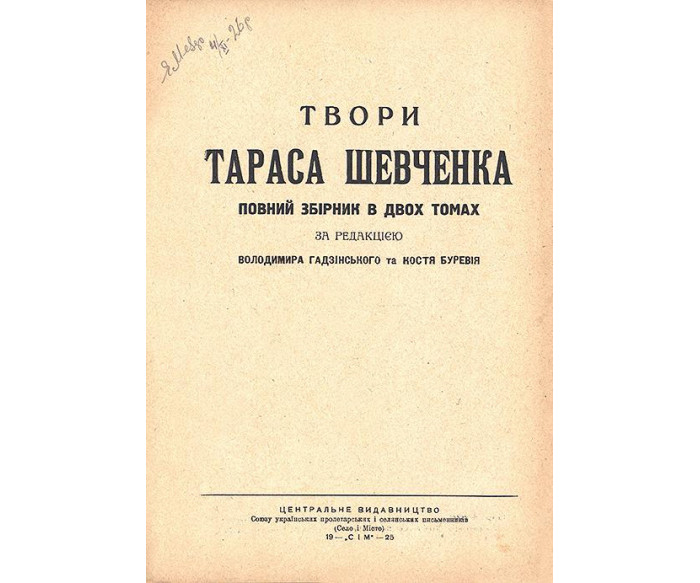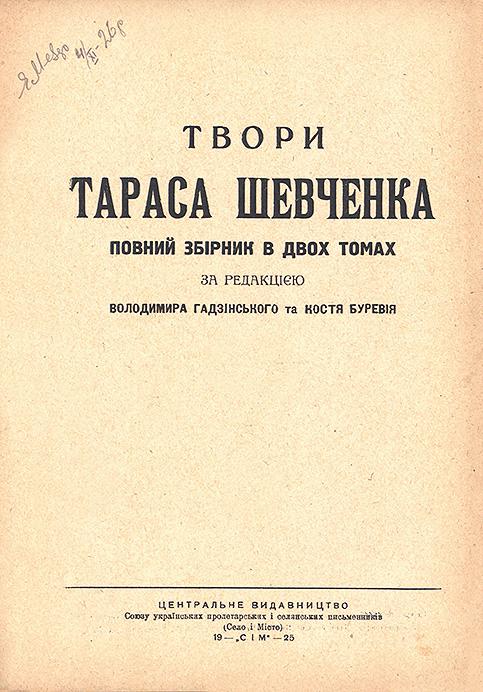 [К.]: Центральне видавництво Союзу українських пролетарських і селянських письменників «СІМ» (Село і Місто): Том І: Типография «Шестой Октябрь»: «Кобзар» в текстах В. Доманицького. Драматичні твори, проза та щоденник в перекладах на українську мову. — XXVI, 352 c.:фронт., іл. — 24,8 × 17 × 1,7 см. Том ІІ: 5-я типография «Танспечати» НКПС. — XVI, 399, [1] с.: фронт., іл. — 24,6 × 17,2 × 1,7 см.