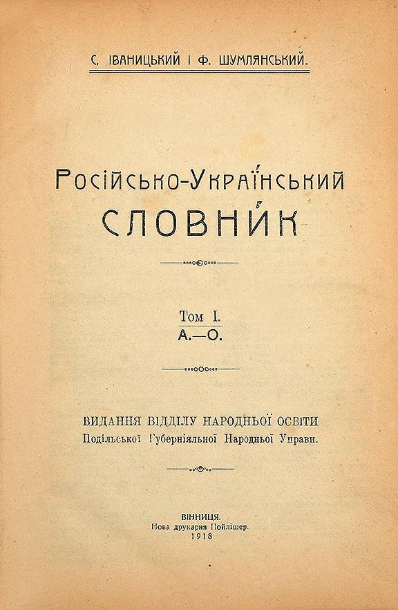 Іваницький С., Шумлянський Ф. Російсько-український словник: [в 2 т.] Т. І-ІІ.