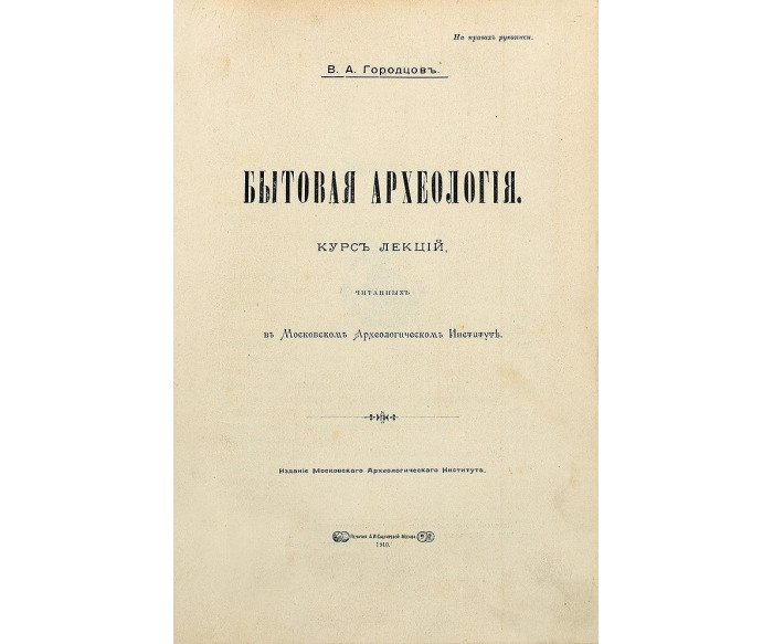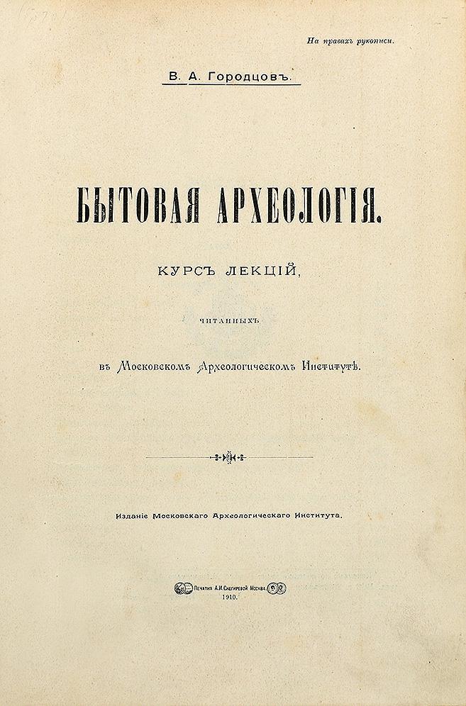 Городцовъ В. А. Бытовая археологія: курсъ лекцій, читанныхъ въ Московскомъ Археологическомъ Институтѣ.