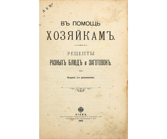 [Драгомирова С. А.] Въ помощь хозяйкамъ. Рецепты разныхъ блюдъ и заготовокъ..