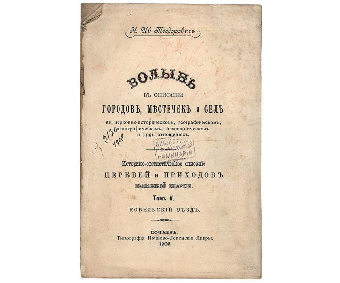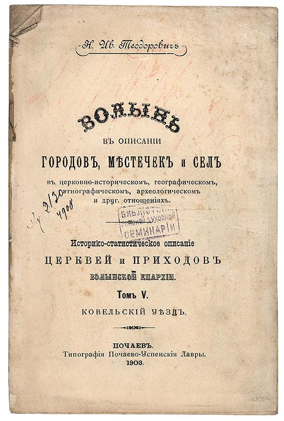 Теодорович Н. И. Волынь въ описаніи городовъ, мѣстечекъ и сель въ церковно- историческомъ, географическомъ, этнографическомъ, археоло- гическомъ и друг. отношеніяхъ.
