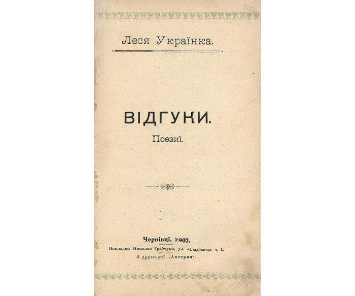 Прижиттєве видання творів Лесі Українки. Книга має історико- культурну цінність і становить колекційний інтерес.