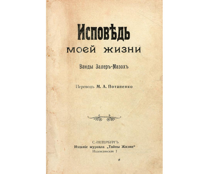 Ванда Захеръ-Мазохъ. Исповѣдь моей жизни Ванды Захеръ-Мазохъ.
