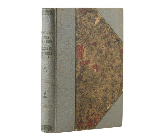 В індивідуальній палітурі (коленкор, «мармуровий» папір, шрифтове тиснення на корінці). Потертості палітури, пожовтіння паперу, плями від залиття, блок частково пошкоджений.