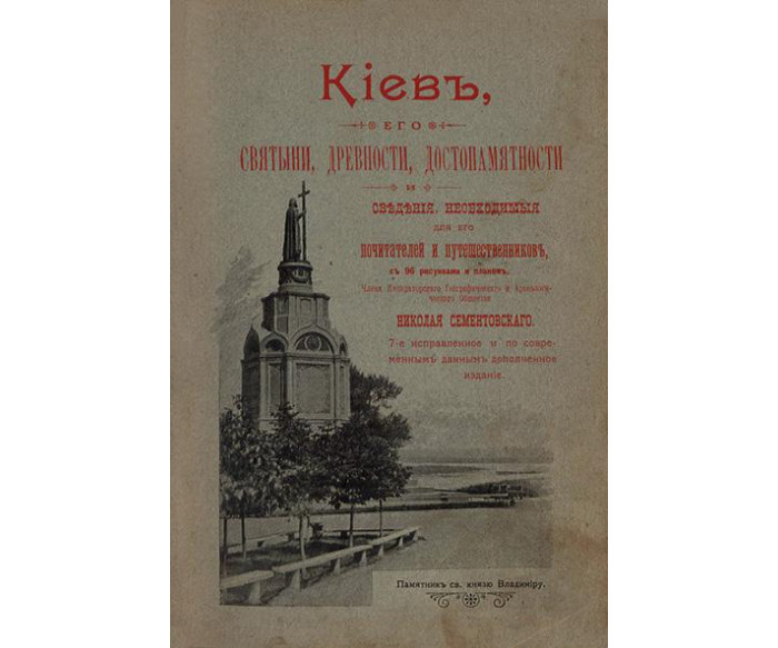 Необходимыя для его почитателів и путешественниковъ, съ 96 политипажами, изображающими виды Кіева, его древніе и замѣчательные храмы, монастыри, чудотворныя иконы, гроб- ницы св. угодниковъ, внутренности пещеръ, памятники, зданія, мозаики, фрески и другіе древніе предметы/ члена Императорскаго Географическаго и Археологическаго Общества Николая Сементовскаго.