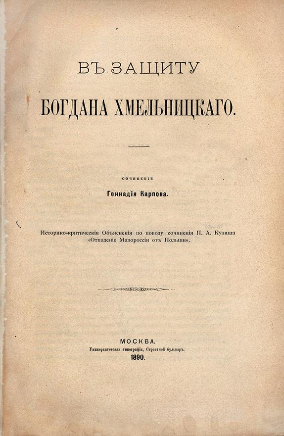 [Карпов Г.] Въ защиту Богдана Хмельницкаго.