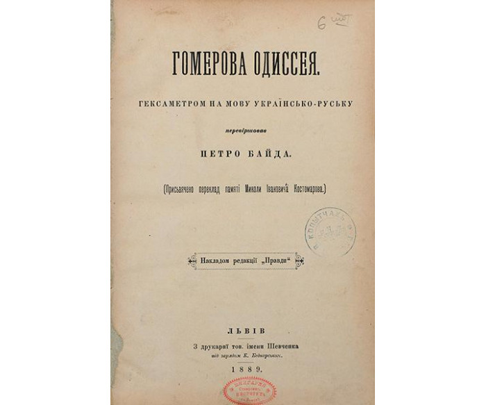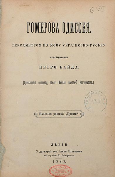 / гексаметром на мову українсько-руську перевіршовав Петро Байда (присьвячено переклад памяті Миколи Івановича Костомарова): [у 2 ч.] Ч. І–ІІ.