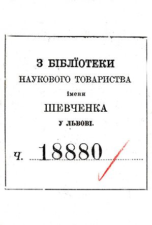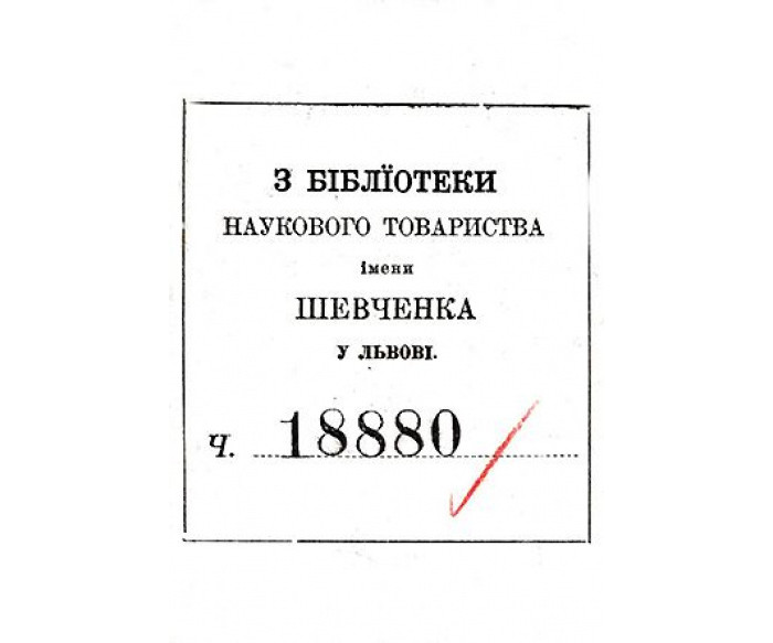 В оригінальній художній видавничій палітурі. Орнаментально-шрифтове тиснення золотою та чорною фарбами на обох боковинках. Золотий обріз. Незначні потертості та забруднення. Штамп «Рідкісна книга». Печатка, наклейка «З біблїотеки Наукового товариства імени Шевченка у Львові», «Екслібрис «Антикварнаѧ книжнаѧ торговлѧ В. И. Клочкова».