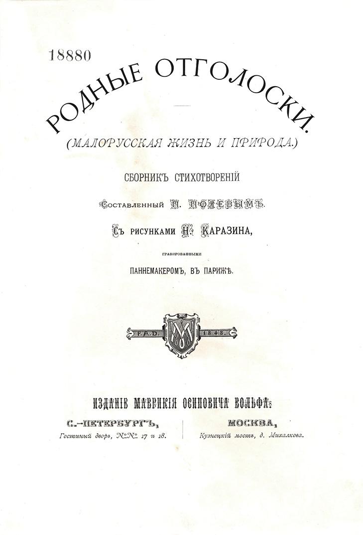 Родные отголоски: сборникъ стихотвореній: малорусская жизнь и природа / составленный П. Полевымъ.