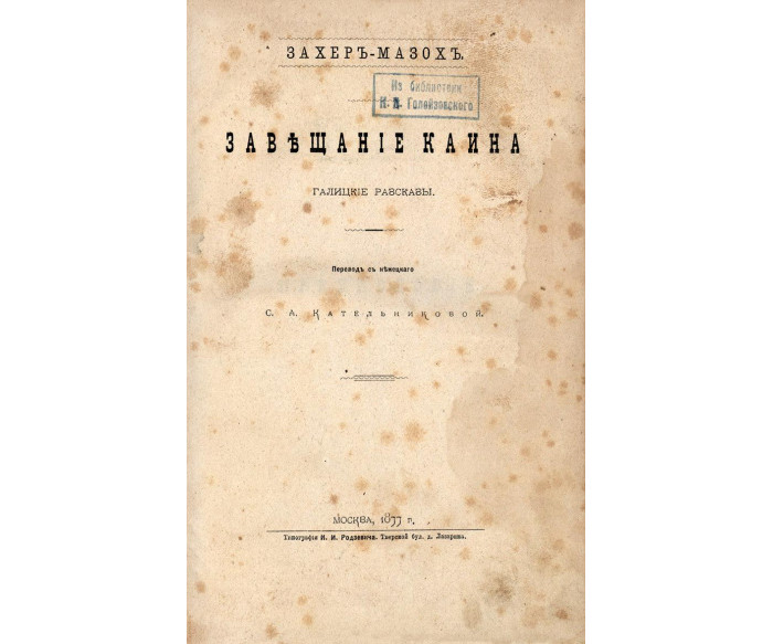 Захеръ-Мазохъ. Завѣщаніе Каина: галицкіе разсказы.