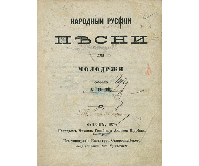 Львовъ: Накладомъ Михаила Голейка и Алексея Щербана; тип. Института Ставропигійского под. управит. Ст. Гучковского. — [2] с., 208 с., [2] с. — 14,8 × 11 × 1,7 см.