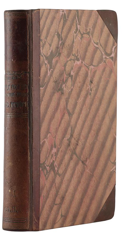 В індивідуальній складеній (шкіра, «мармуровий» папір) палітурі. Орнаментально-шрифтове тиснення золотом на корінці. Незначні потертості та забруднення. Сліди реставрації. Печатка «Печать Одесской 1й прогимназіи».
