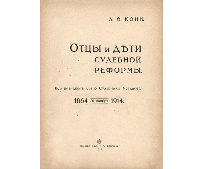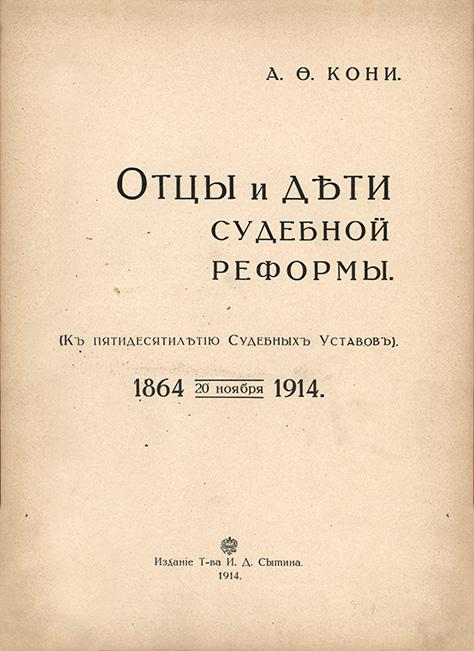 Кони А.Ф. Отцы и дѣти судебной реформы. (Къ пятидесятилѣтію Судебныхъ Уставовъ). 1864–1914.