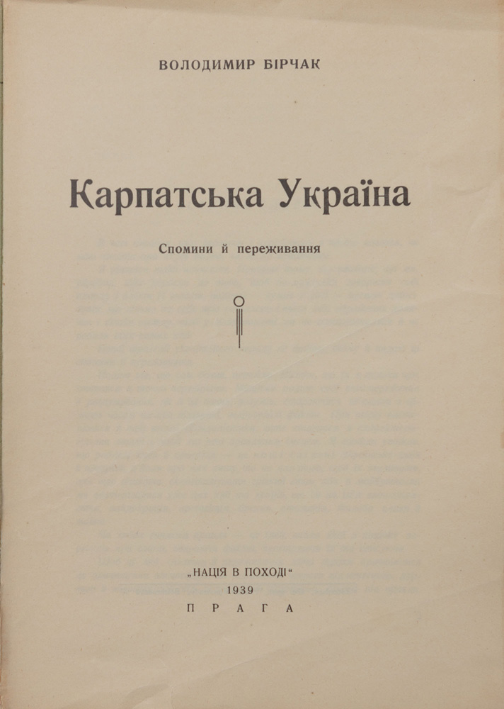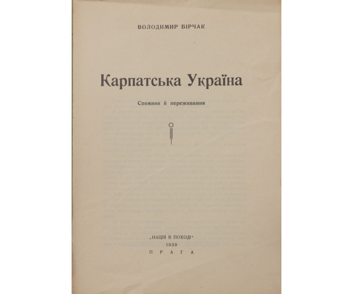 Бірчак В. Карпатська Україна: спомини й переживання.