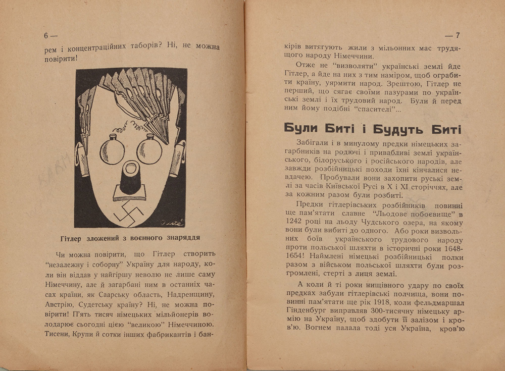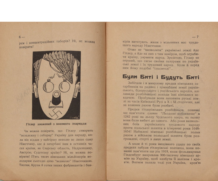 Брошуру-попередження «Гітлер. Головний ворог українського народу» було видано завдяки «Товариству допомоги визвольному рухові на Західній Україні», сформованому в 1931 р. Автор наголошує, що Гітлер має на меті перетворити Україну на німецьку колонію.