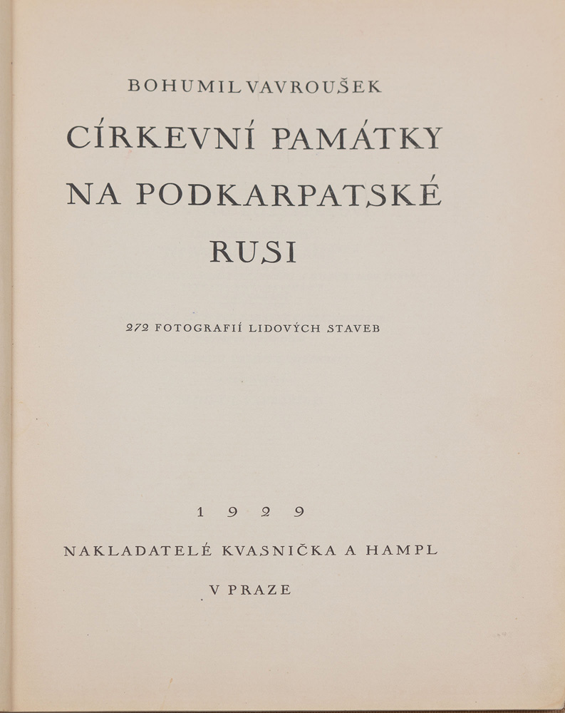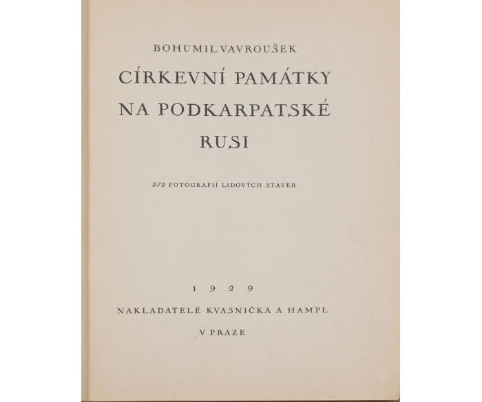 VAVROUŠEK B. CÍRKEVNÍ PAMÁTKY NA PODKARPATSKÉ RUSI: 272 FOTOGRAFI Í LIDOVÝCH STAVEB.
