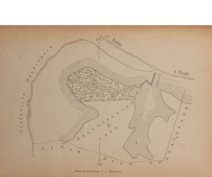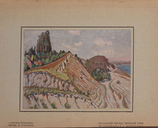 [Харків]: Державне видавництво України; друк. ім. Петровського, 1928. — [1] арк., 17 с., [1] арк. іл., [1] арк. план, [1] арк.: іл., план. — (Управління Науковими установами НКО УСРР Комітет державного заповідника «Могила Т. Г. Шевченка»). — 23,4 × 17,3 × 0,4 см.
