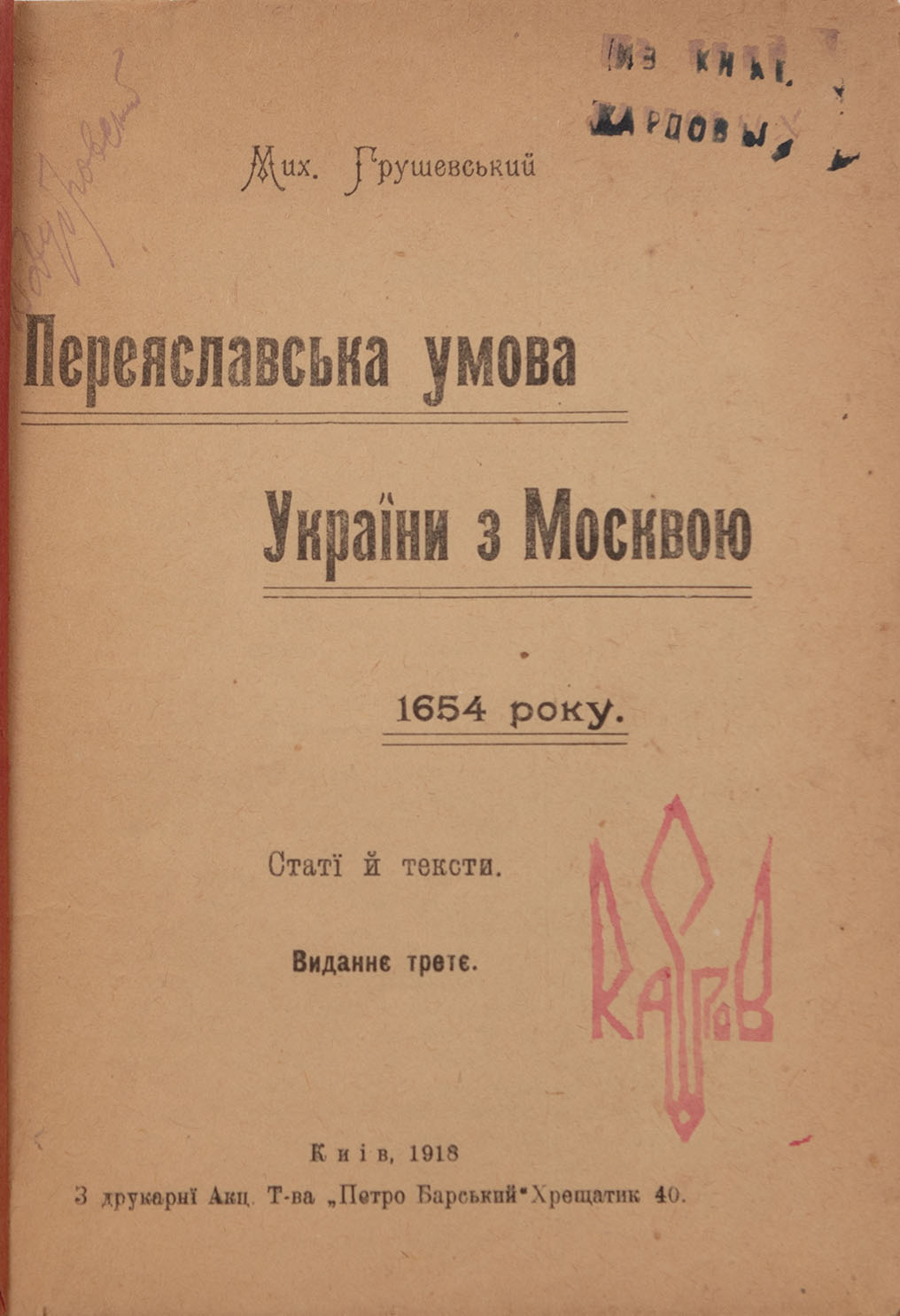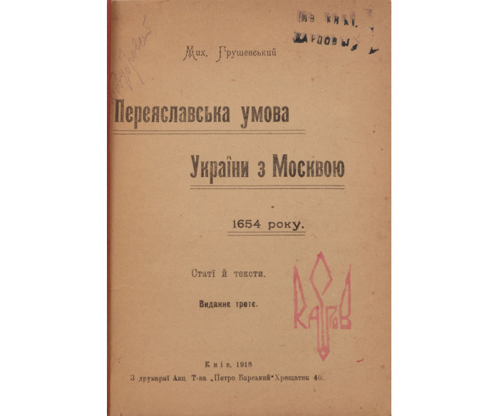 Грушевський М. Переяславська умова України з Москвою 1654 року. Статї й тексти.