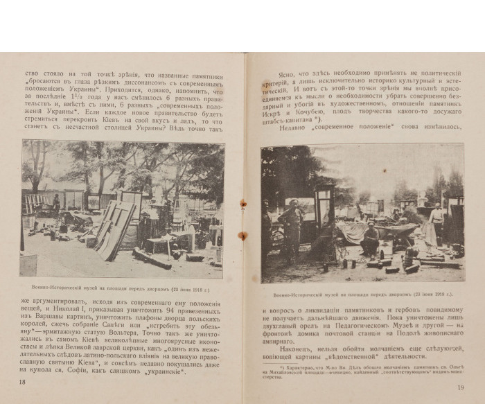 Ернстъ Ф. Художественныѧ сокровища Кіева, пострадавшіѧ въ 1918 г. Съ 9 иллюстраціями: Фотографіи «Отдѣла охраны памятниковъ старины и искусства при Главномъ управленіи искусствъ и національной культуры» .