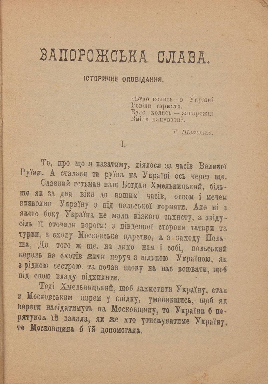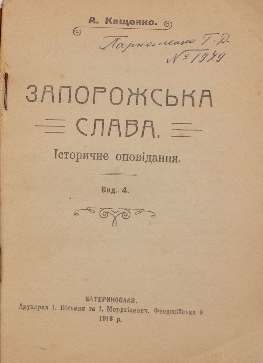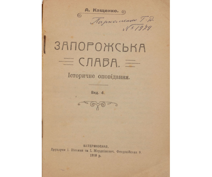 Кащенко А. Запорожська Слава: історичне оповідання.