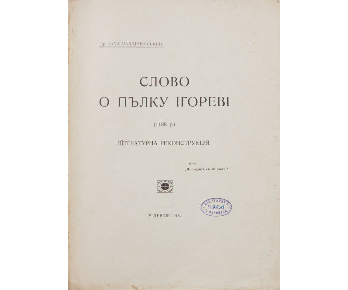 Літературна реконструкція «Слова о полку Ігоревім» українського громадського діяча, адвоката, літературознавця Івана Мандичевського (1854–1925). Спроба відновити оригінальний текст «Слова…», відкинувши церковнослов’янські та «псковсько-московські» домішки, які були додані у передруці пам’ятки 1800 року. Автор стверджує, що «Слово…», створене весною 1188 р. на Чернігівщині, є питомим твором українського народу.