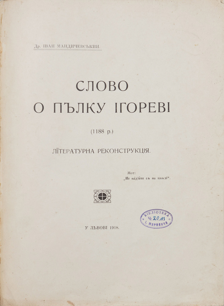 Мандичевський І. Слово о пълку Ігореві (1188 р.) лїтературна реконструкція.