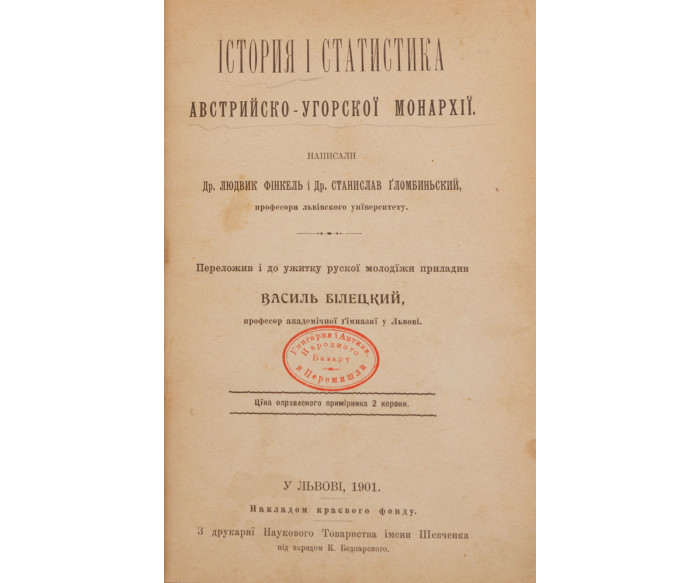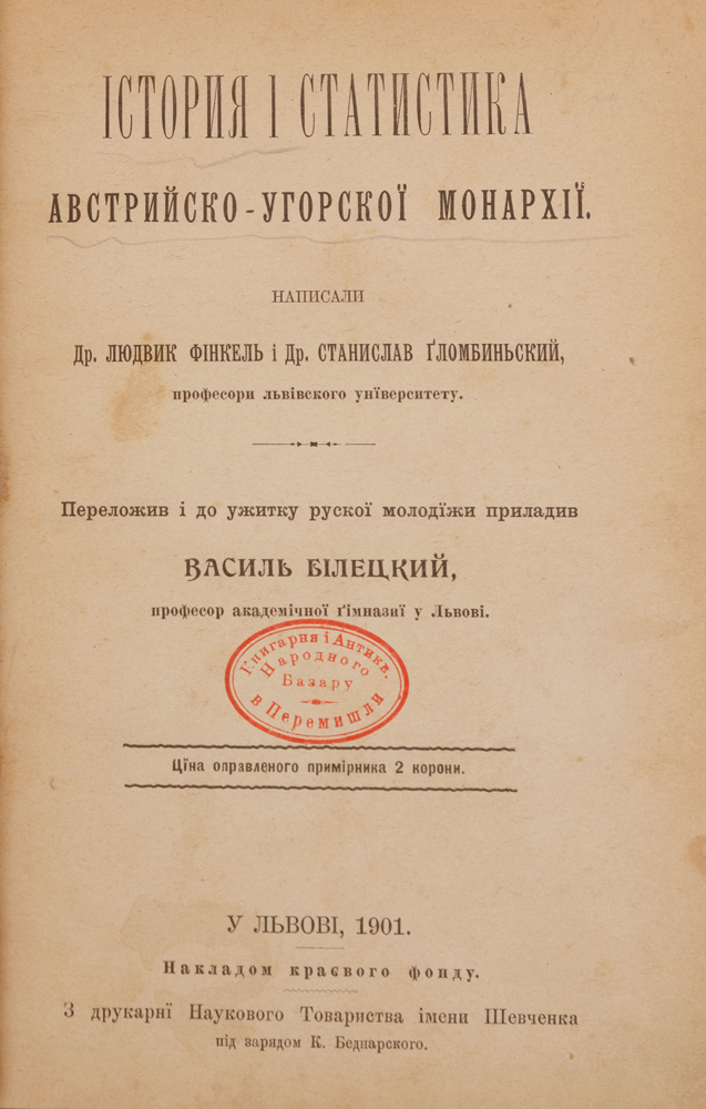 Написали Др. Людвик Фінкель і Др. Станислав Ґломбиньский, професори львівського унїверситету; переложив і до ужитку рускої молодїжи приладив Василь Білецкий, професор академічної ґімназії у Львові.
