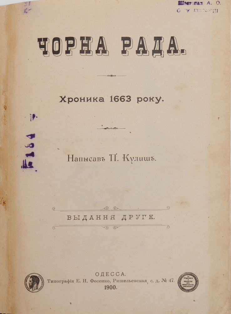 Одесса: Типографія Е. И. Фесенко, 1900. — Видання друге. — [1] арк. портр., 252 c.: портр. — 20,5 × 15 × 1,6 см.