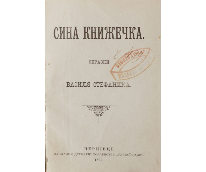 Чернівцї: Накладом друкарнї товариства «Рускої ради», 1899. — 130 с., [1] арк. — 14,3 × 10,3 × 0,8 см.