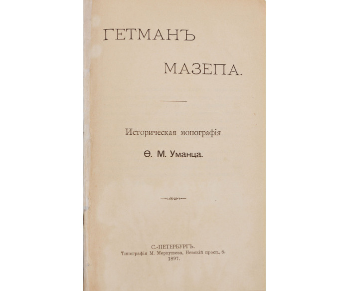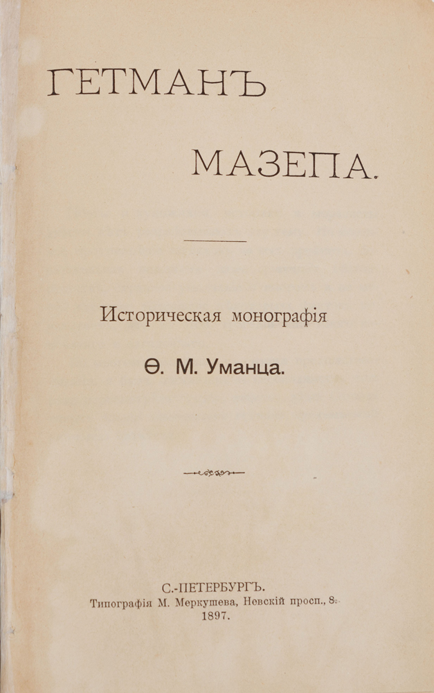 [Уманецъ Ф. М.] Гетманъ Мазепа / историческая монографія Ф. М. Уманца.