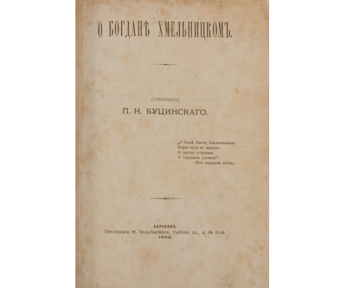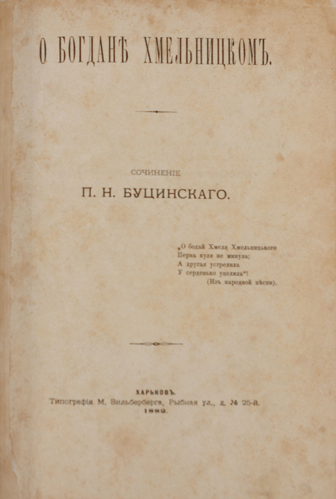 [Буцинскій П. Н.] О Богданѣ Хмельницкомъ / сочиненіе П. Н. Буцинскаго.