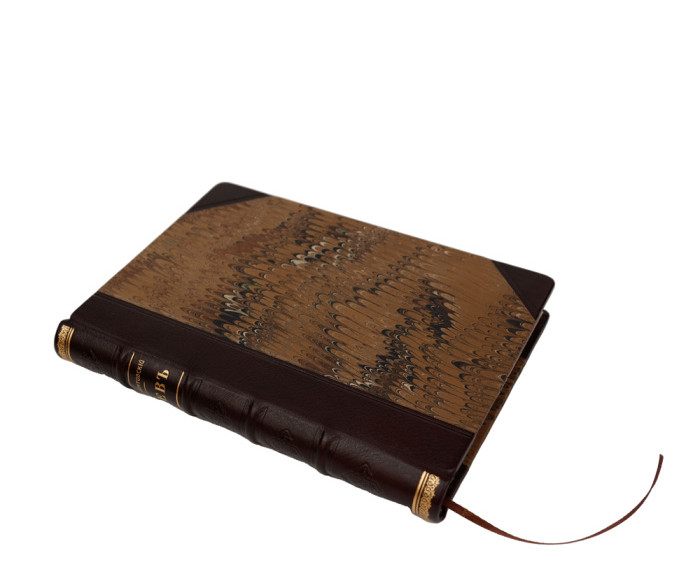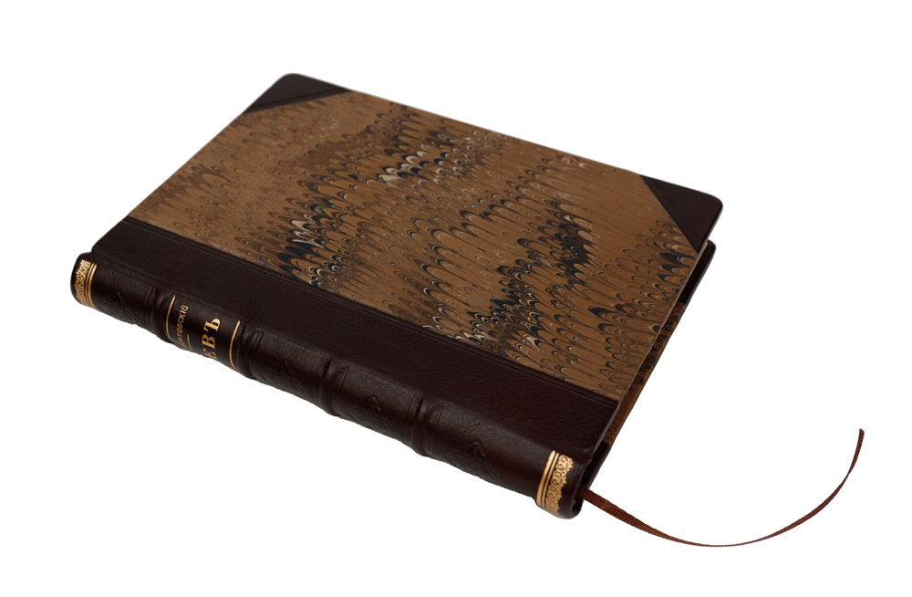 В індивідуальній складеній (шкіра, «мармуровий» папір) палітурі з тисненням на корінці. Незначні потертості та забруднення. На титульному аркуші підпис «П. Загребельний». Позначки кольоровими олівцями, написи чорнилом.