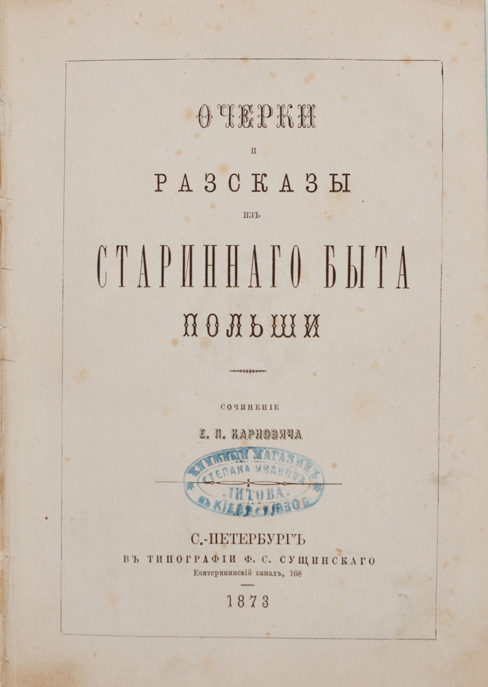 Провенанс: на титульному аркуші печатка «Книжный магазинъ Степана Иванова Литова въ Кіевѣ съ 1830 г.».
