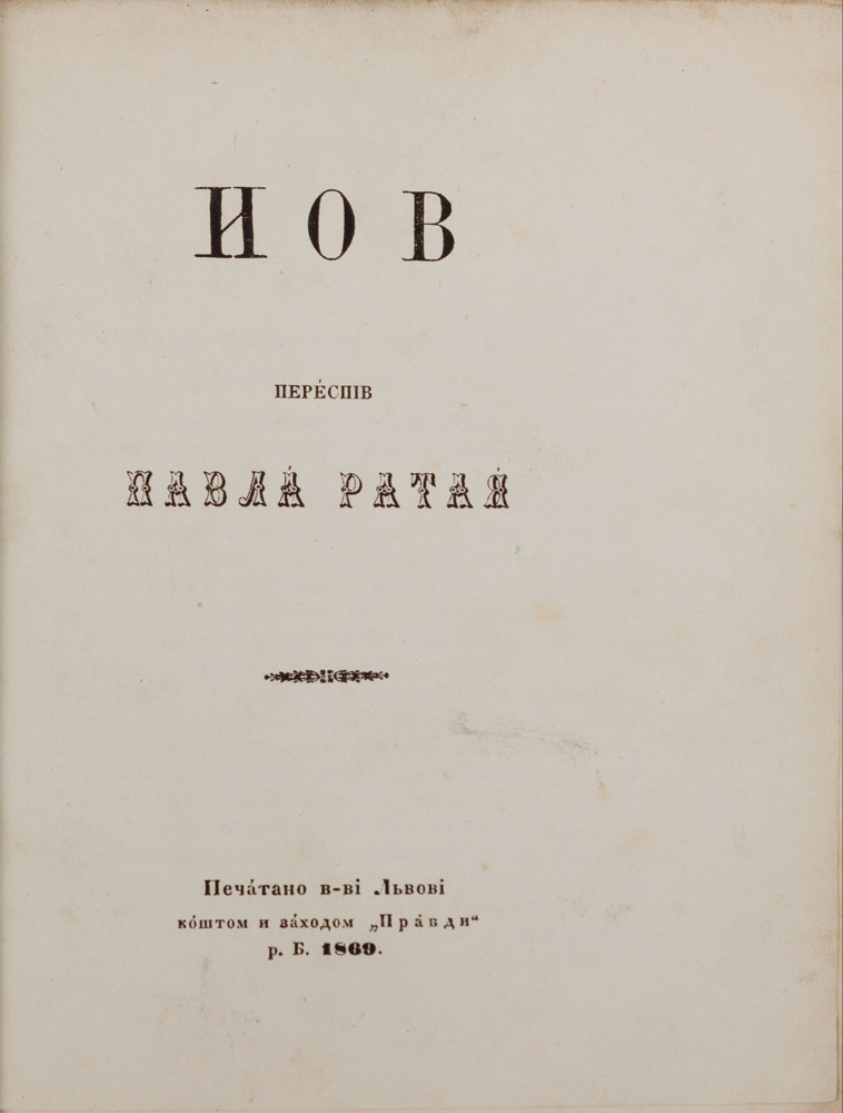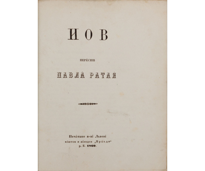 [Ратай П.] [Куліш П.] Иов / переспів Павла Ратая.