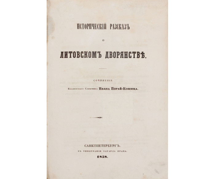[Порай-Кошицъ И.] Историческій разсказъ о Литовскомъ дворянствѣ / Сочиненіе Колежскаго Совѣтника Ивана Порай-Кошица.